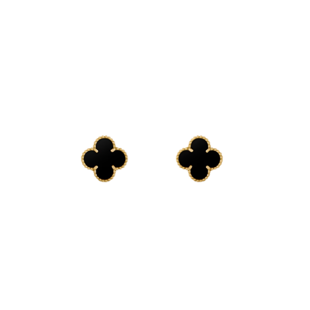 2 Clover 18K Solid Yellow Gold & Black Earrings