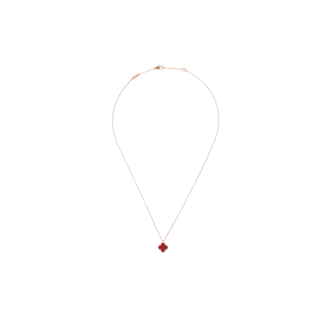 Small 1 Clover 18K Solid Yellow Gold & Red Necklace
