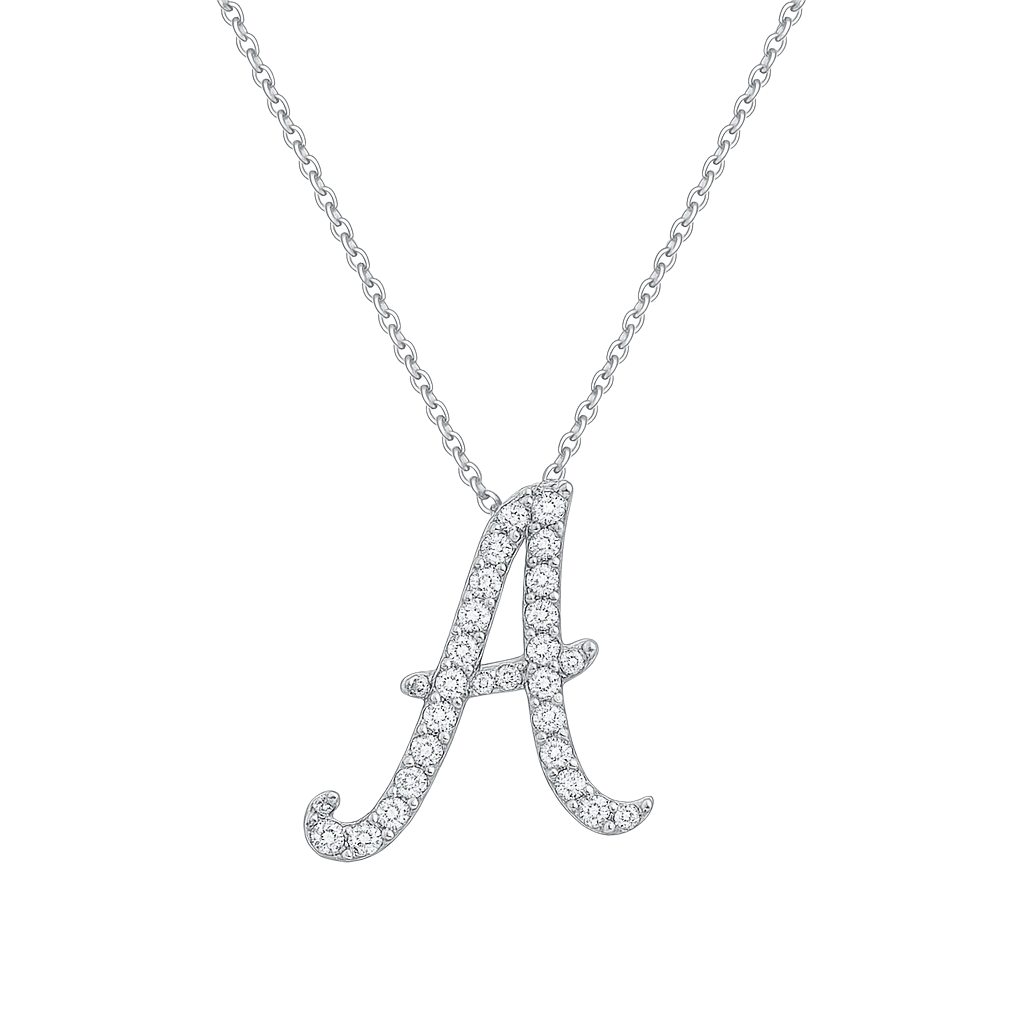 White Gold Round Cut Initial Pendant