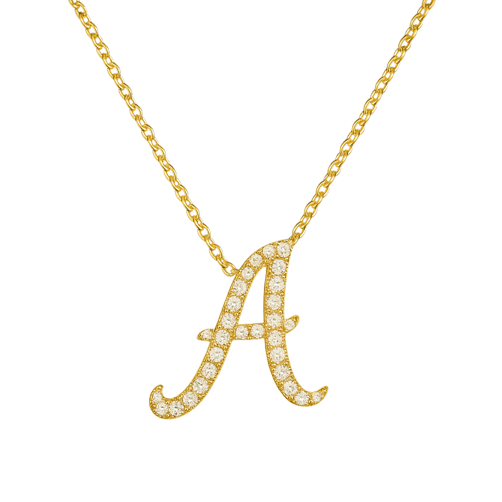 Make a statement with our exquisite Italic Initial Diamond Pendant, crafted from 9KT Gold and adorned with natural pavé-set diamonds. Designed to add a touch of elegance and individuality, this timeless piece is perfect for everyday wear or special occasions.